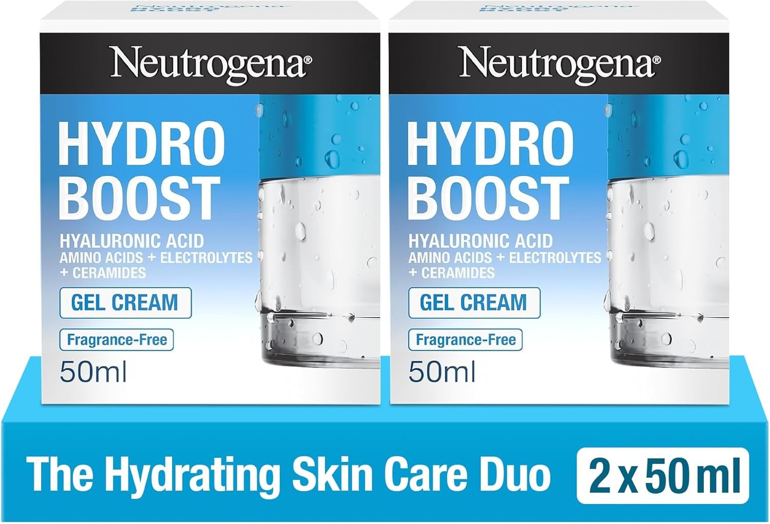 Neutrogena Hydro Boost Gel Cream (2x 50ml Bundle), Intensively Hydrating Fragrance-Free Face Cream for Dry Skin, With Hyaluronic Acid, Advanced Hydration for 72 Hours, Suitable for All Skin Types