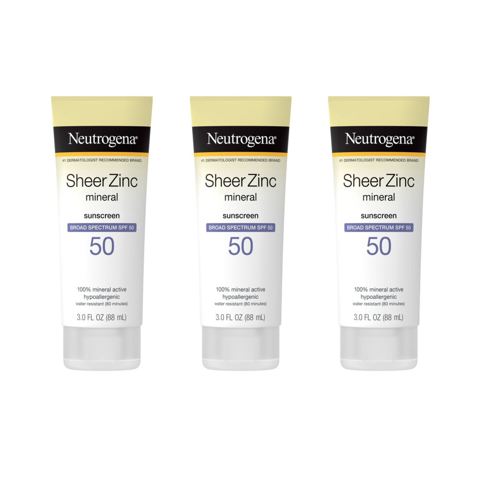 Neutrogena Sheer Zinc Mineral SPF 50 Sunscreen, 3 FL OZ (88 mL) 3 Pack