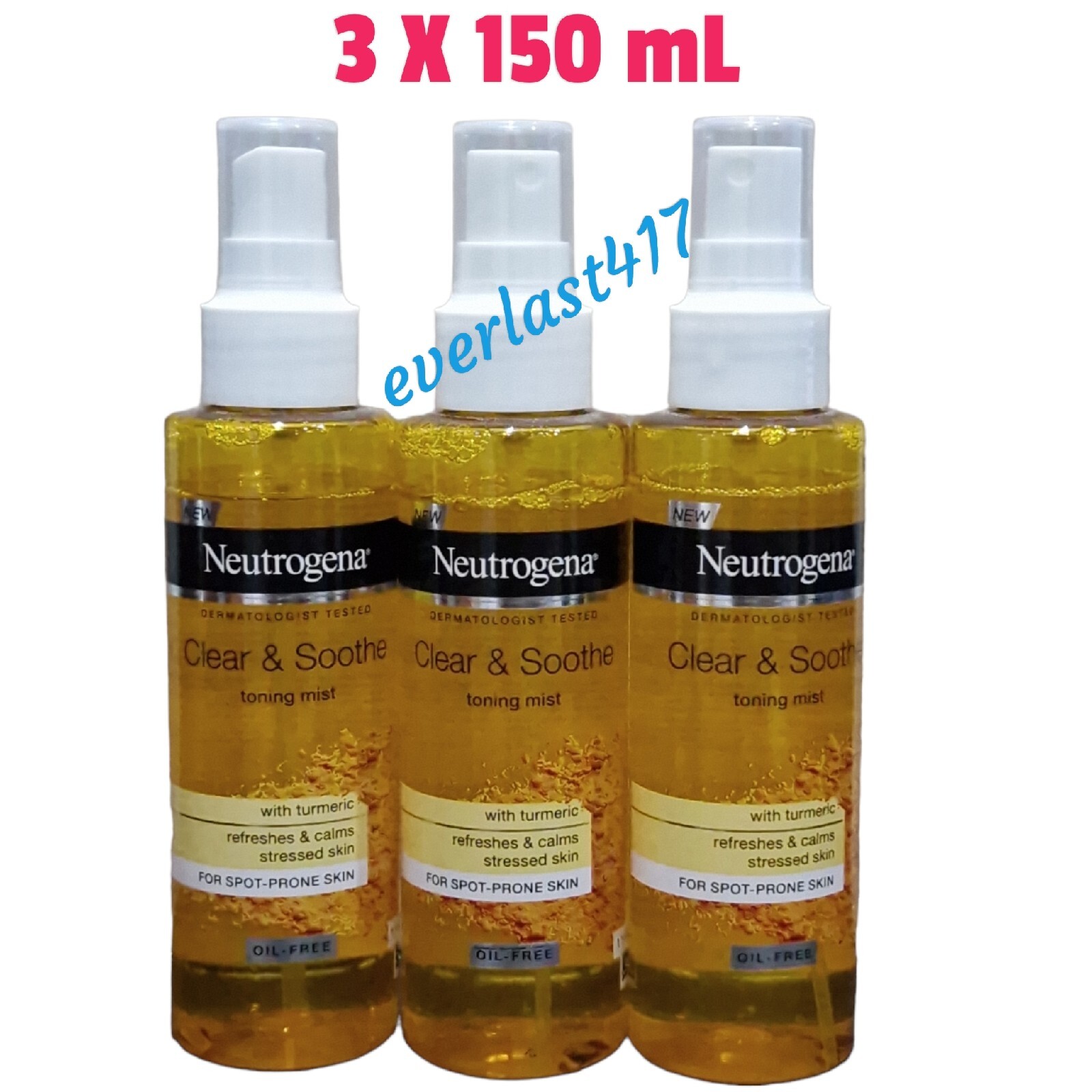 Neutrogena Clear & Soothe Oil Free Toning Mist Refresh Calm Stress Skin 3x150ml