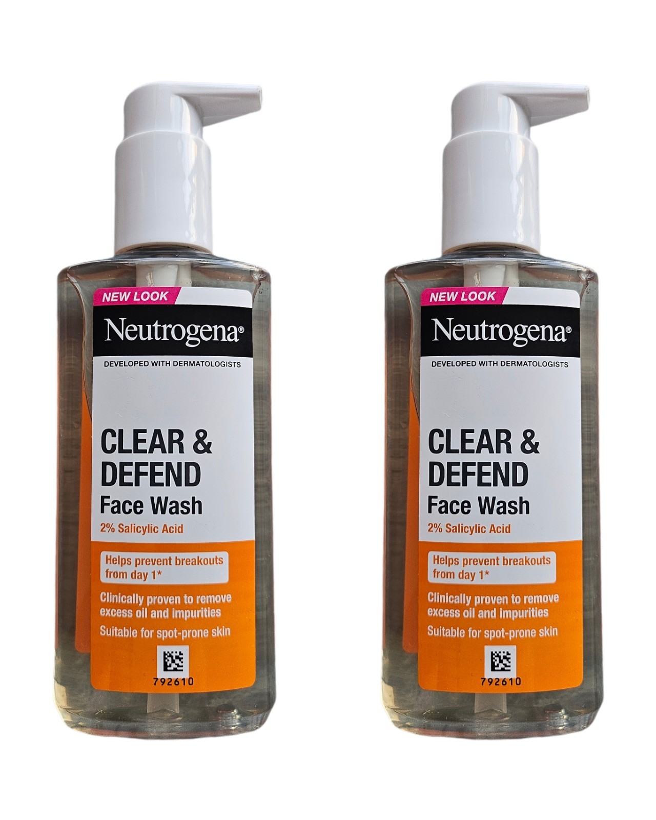 2x Neutrogena Clear and Defend Facial Wash With 2% Salicylic Acid Oil Free 200ml