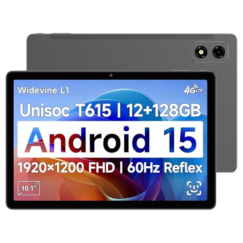 BNCF [2025 New Android 15] 10.1 inch Tablet, FHD IPS 1920x1200 and 60Hz Reflex Tablet, Widevine L1, Unisoc T615 (8 Core), 12GB+128GB(1TB TF), 4G LTE+2.4G/5G Wifi+BT5.0+GPS, 5MP Camera, 6500mAh