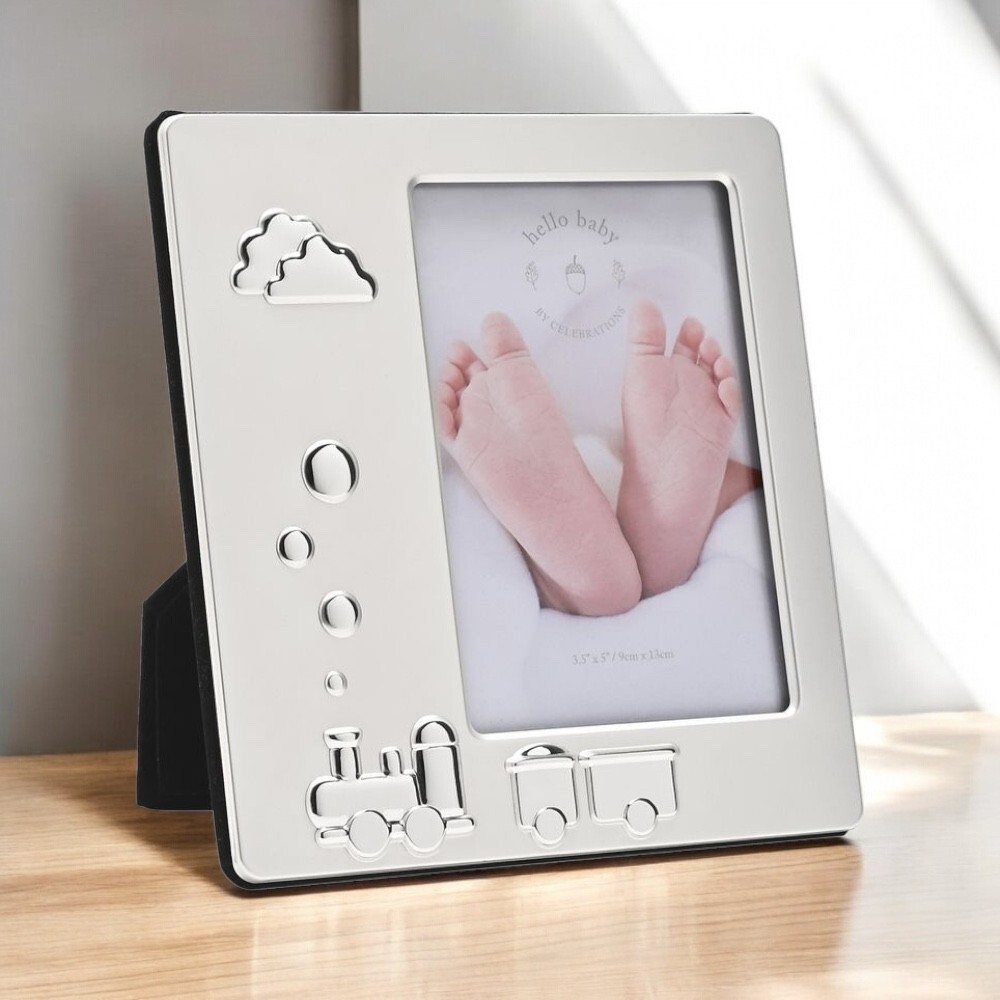 Hello Baby Boy 2 Tone Silverplated Train Frame New Baby Christening Nursery Gift
