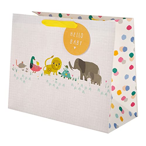 Hallmark New Baby Large Gift Bag for Boy & Girl, Safari Design with Gift Tag