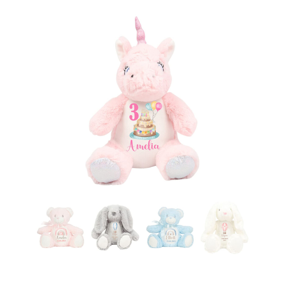 Hoolaroo Personalised Teddy Bear for Girl New Boy Baby Gift Newborn Baby Present 1st Birthday Gift 2nd 3rd 4th 5th Teddies Christening Baptism First Keepsake Rainbow (Pink Teddy