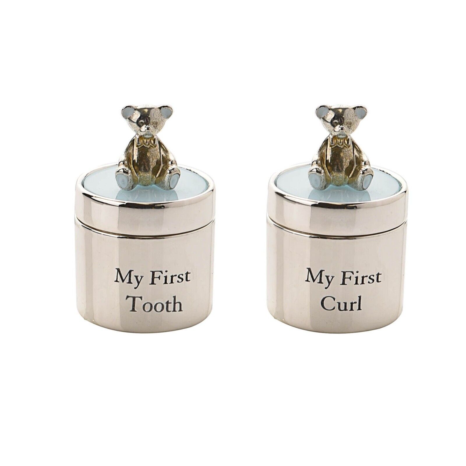 First Tooth & Curl Teddy Bear Set - Christening New Born Baby Boy Gift