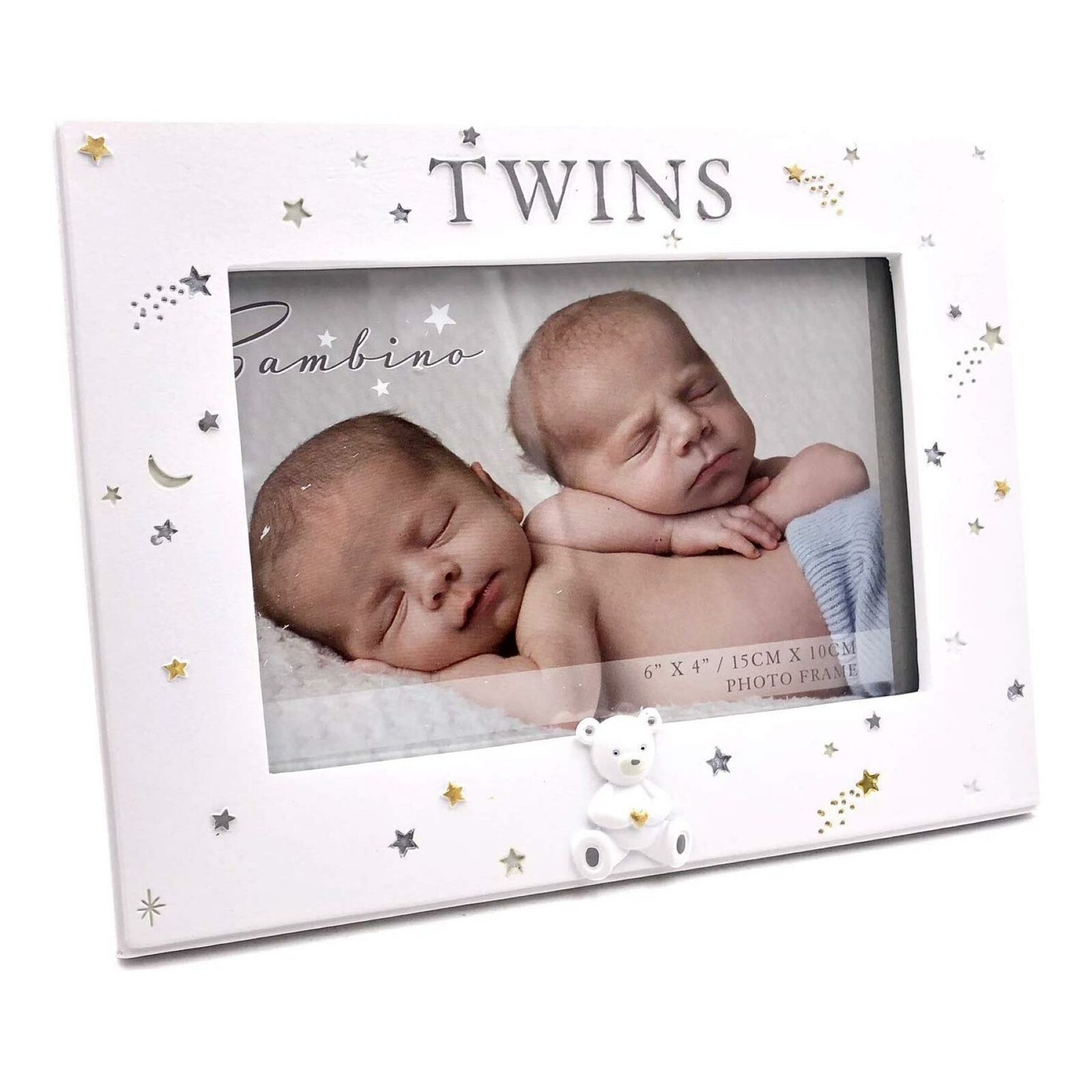 Bambino Photo Frame Picture Twins White 6x4 Landscape New Baby Boy Girl Gift
