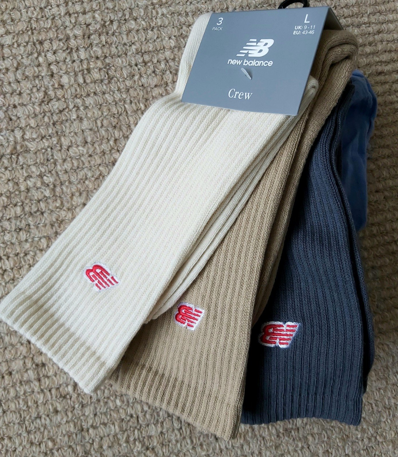 3 Pairs : 9-11 43-46 NEW BALANCE Natural Beige Grey CREW SPORTS SOCKS NBbox