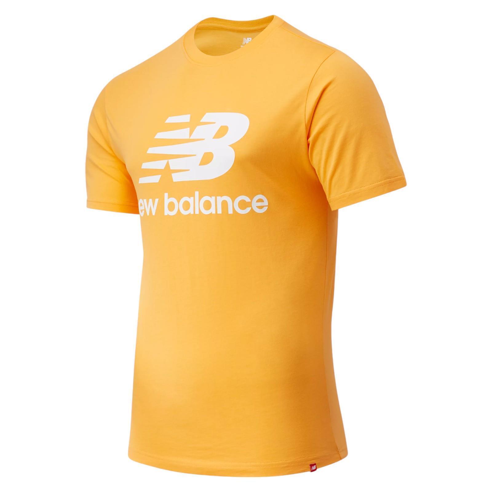 NEW BALANCE MEN'S ESSENTIALS STACKED LOGO T-SHIRT TEE TOP YELLOW RETRO NEW BNWT