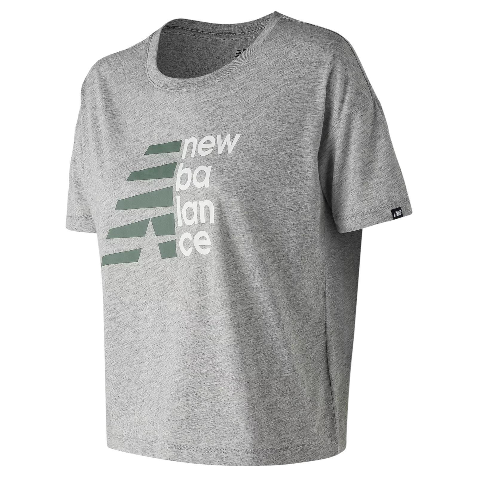 NEW BALANCE WOMEN'S ESSENTIALS SPLIT LOGO T-SHIRT TEE TOP GREY RETRO NEW BNWT L