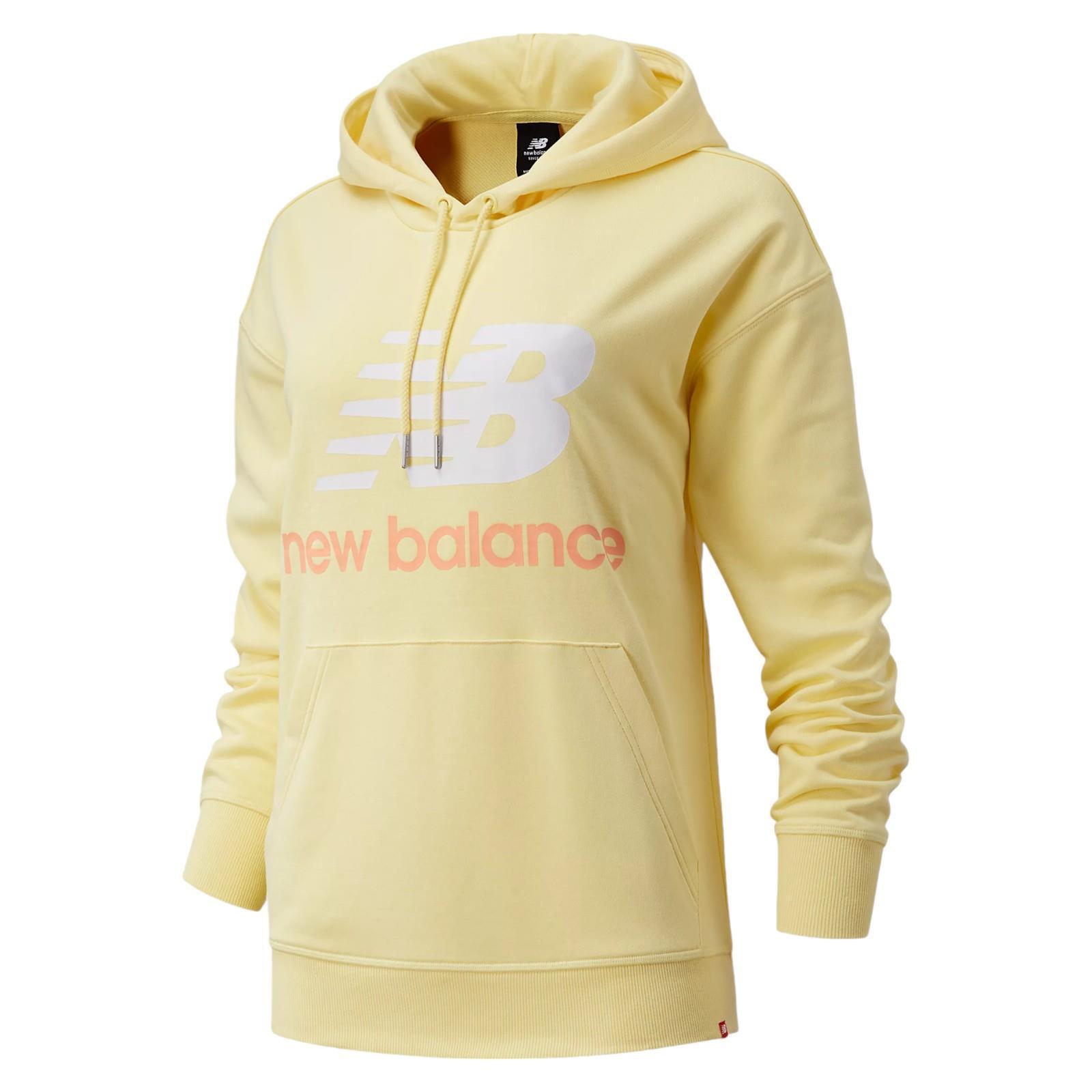 NEW BALANCE WOMENS ESSENTIAL STACKED LOGO OVERSIZE HOODIE YELLOW COMFY LOUNGE XL