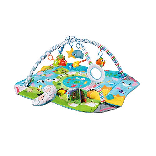Animal Safari PlayMat, Play Gym Activity Play Mat & Gym for New Born Babies and Toddlers,Soft Toys,Fun Animals,Textures,Mirror, Discovery Carpet for Infants,New Born -Suitable from Birth