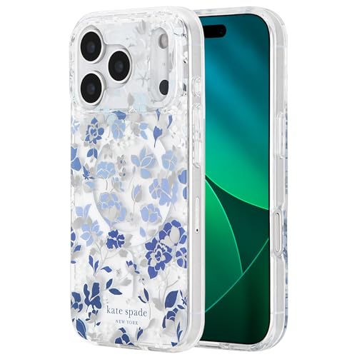 Kate Spade New York iPhone 16 Pro Case - Compatible with MagSafe - Designer Phone Case - Flowerbed Blue Gems