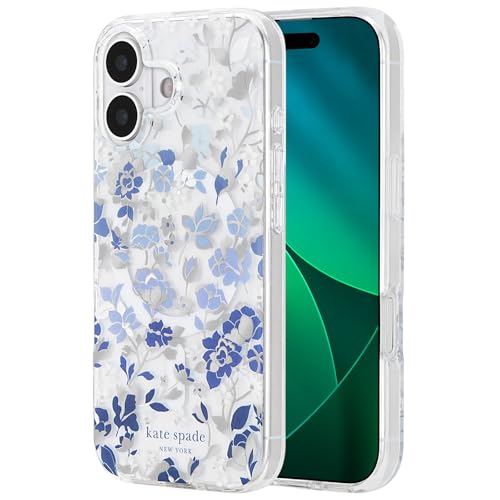 Kate Spade New York iPhone 16 Case - Compatible with MagSafe - Designer Phone Case - Flowerbed Blue Gems