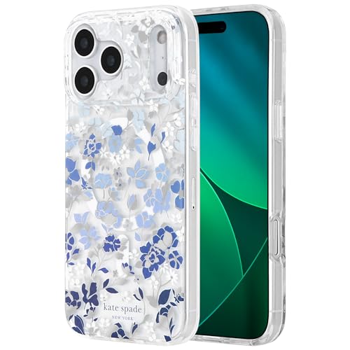 Kate Spade New York iPhone 17 Pro Case - Compatible with MagSafe - Designer Phone Case - Flowerbed Blue Gems