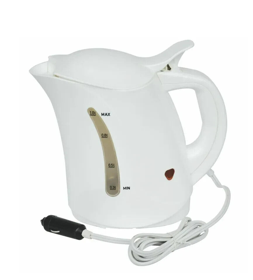 White Travel Kettle Portable Electric 1L Camping Caravan Kitchen Jug Holiday New