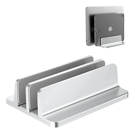BULL-TECH New Vertical Laptop Stand, Adjustable 2 Slot Aluminum Desktop Holde(Up to 17.3 inch), Fits All MacBook/Microsoft Surface/HP/Dell/ChromeBook/iPad and Gaming Laptops (Silver)