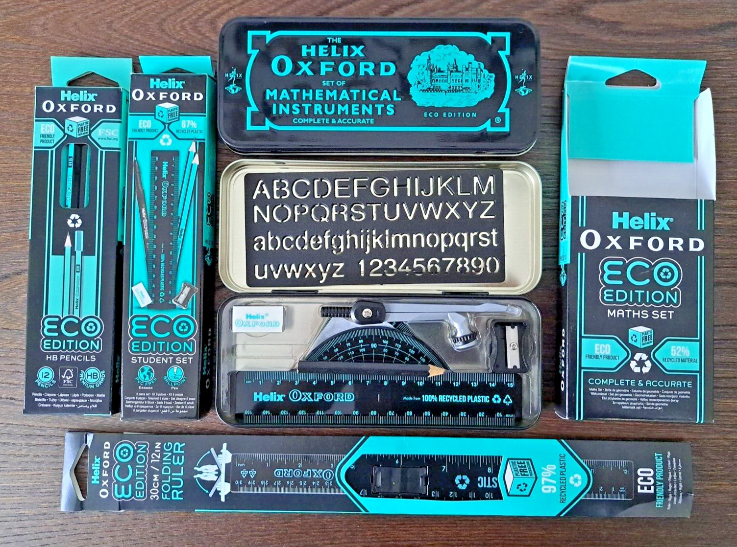 NEW HELIX ECO OXFORD STUDENT BUNDLE MATHS SET HB PENCILS FOLDING RULER PENS BLU