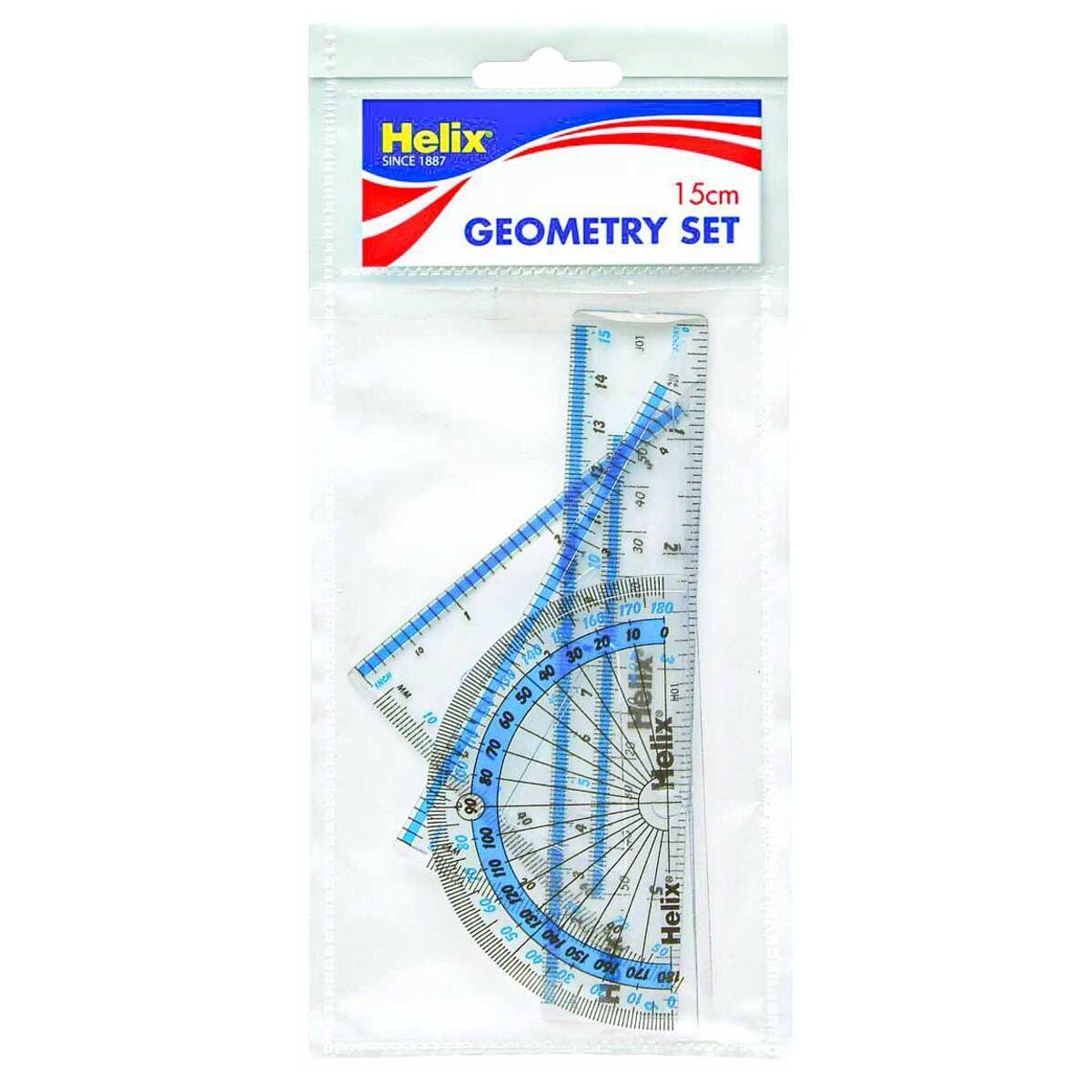 HELIX 15CM GEOMETRY SET MATHS SET 4 PIECE SET MATHS STUDENT STATIONERY SET NEW