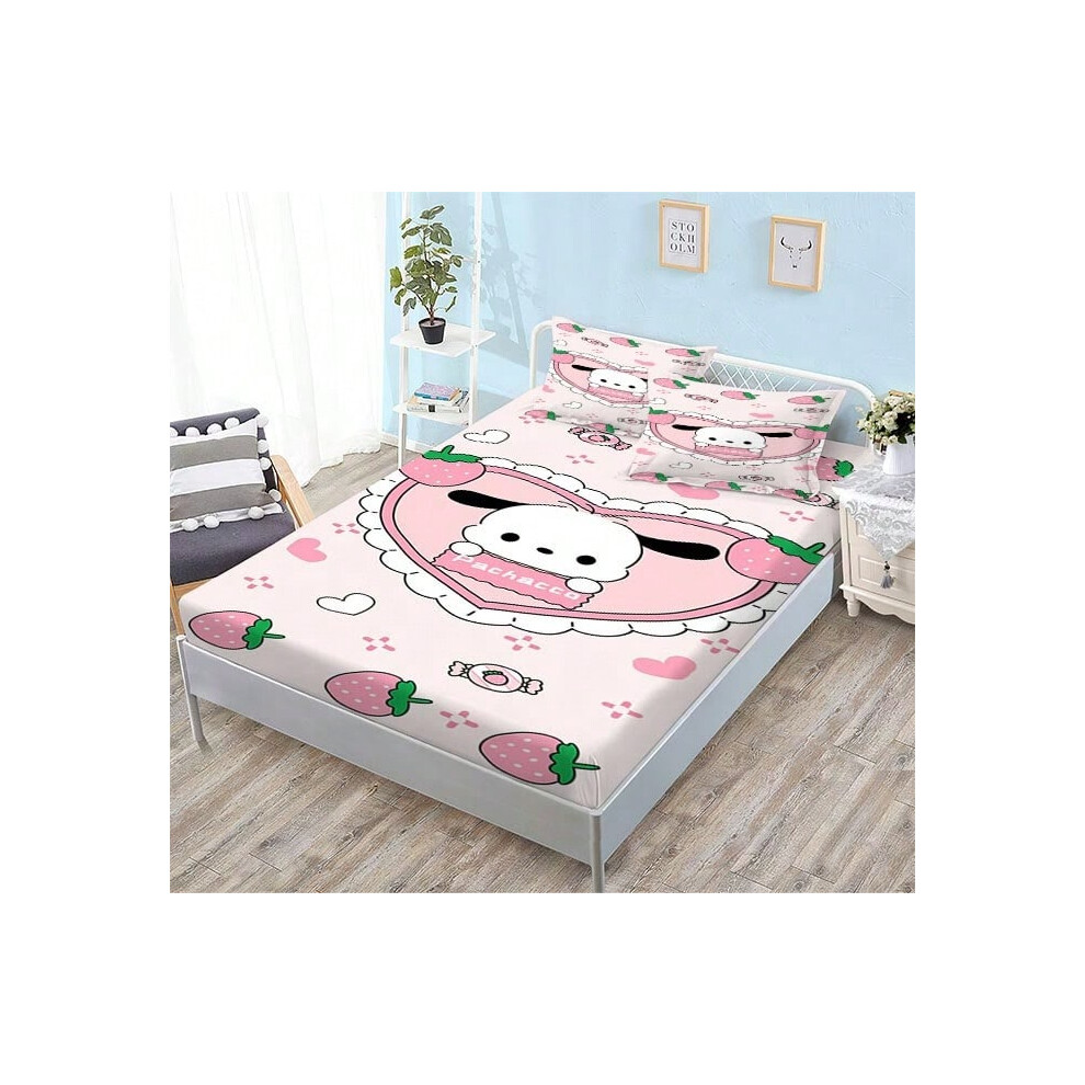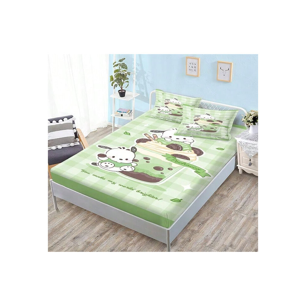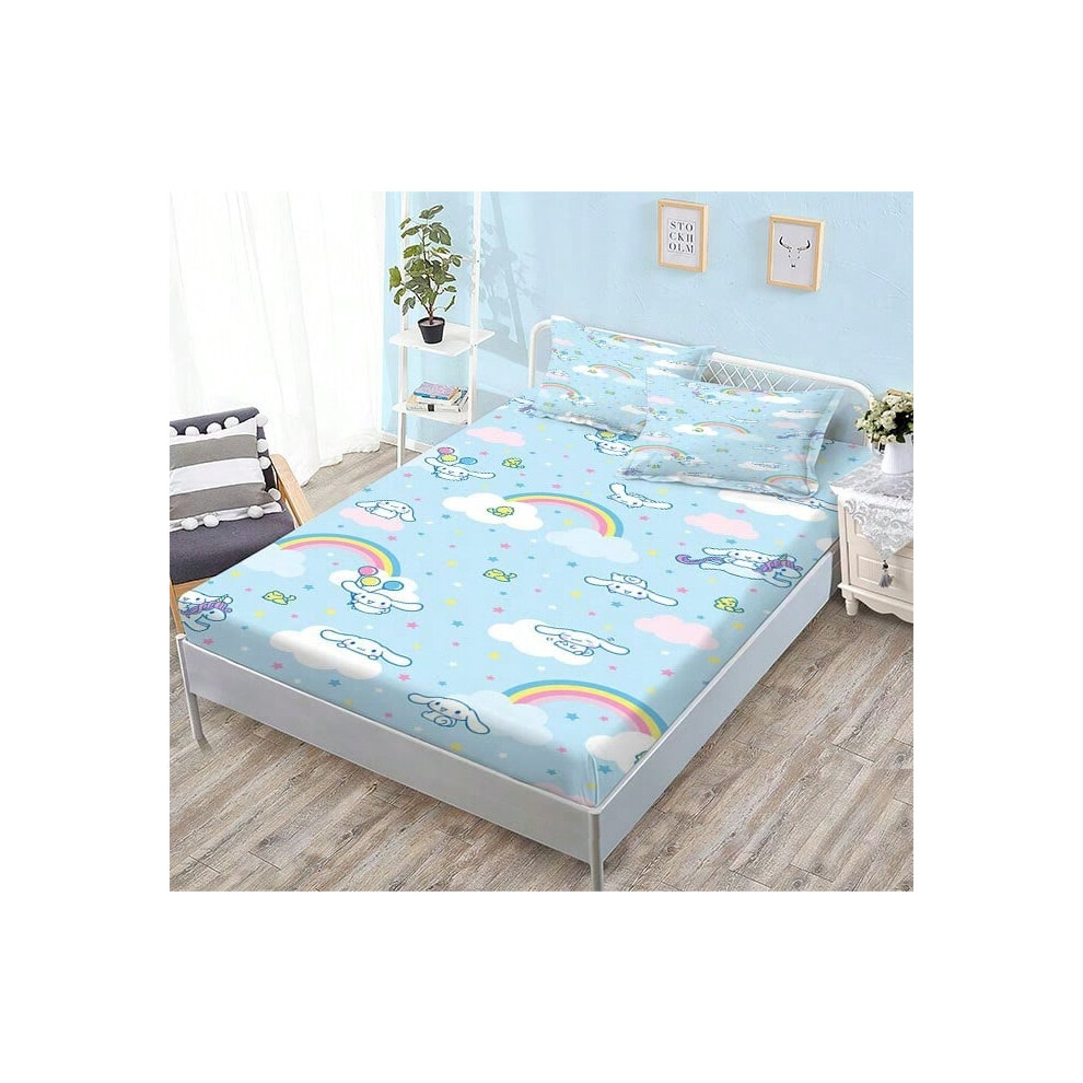 (QE15, Single fitted sheet: 150*200 (suitable for mattresses within 5-30cm)) New Sanrio Fitted Sheet Three-piece Set Mattress Protector Cartoon Childr