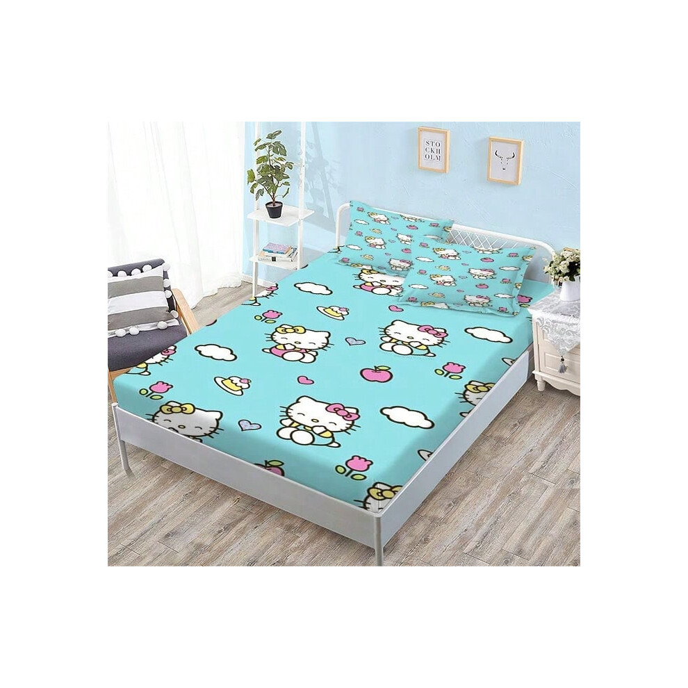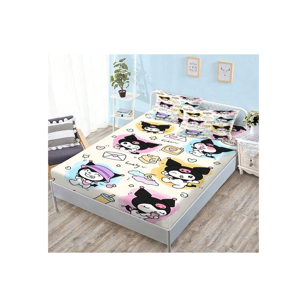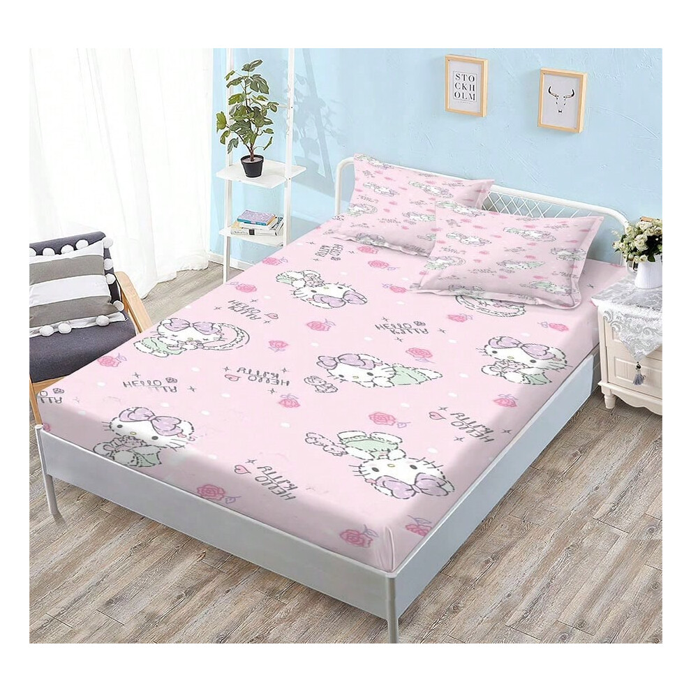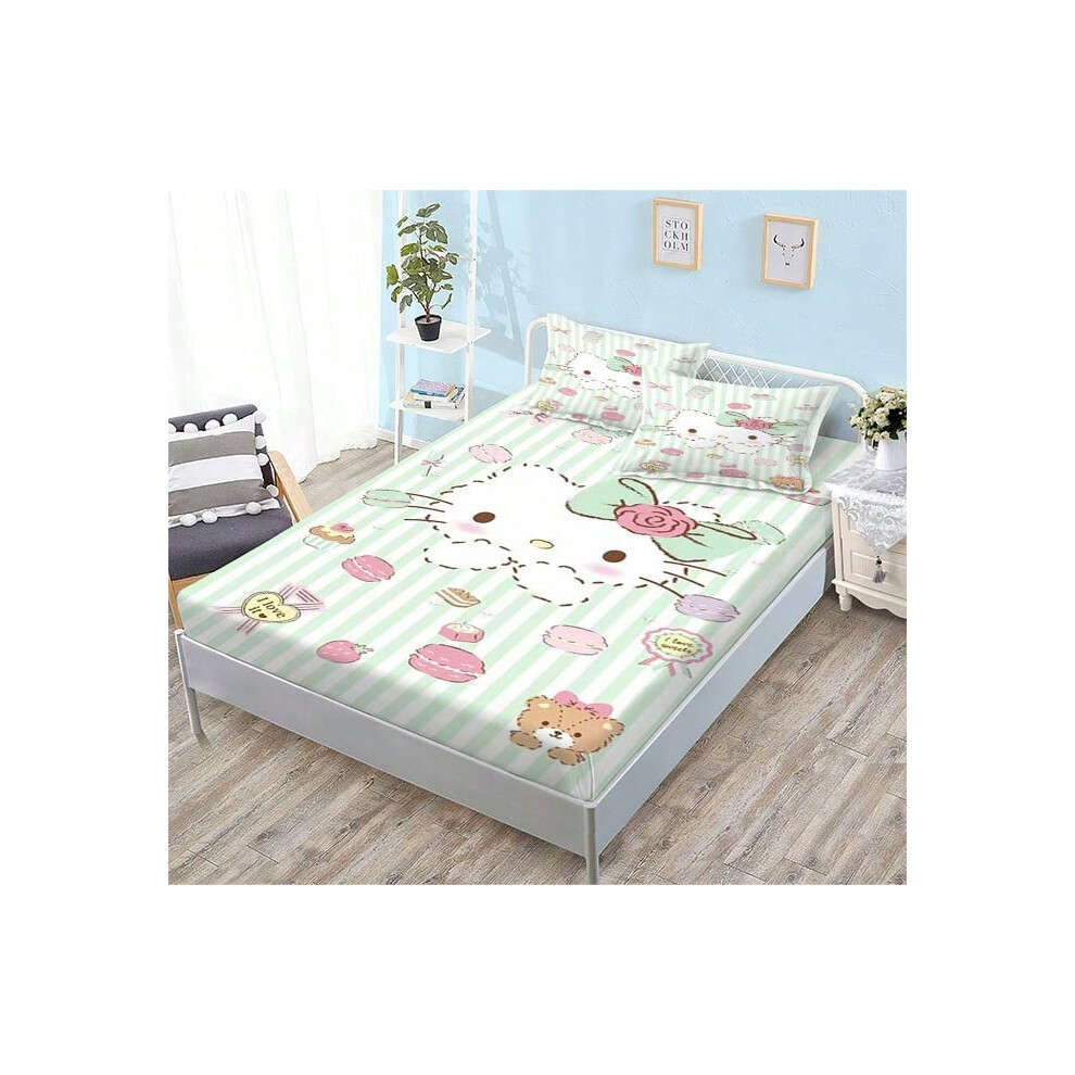(QE11, Single fitted sheet: 135*200 (suitable for mattresses within 5-30cm)) New Sanrio Fitted Sheet Three-piece Set Mattress Protector Cartoon Childr