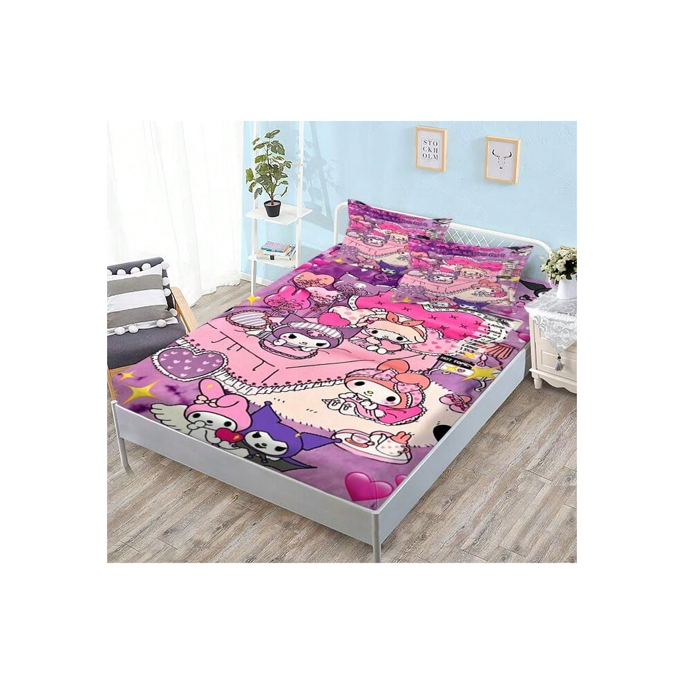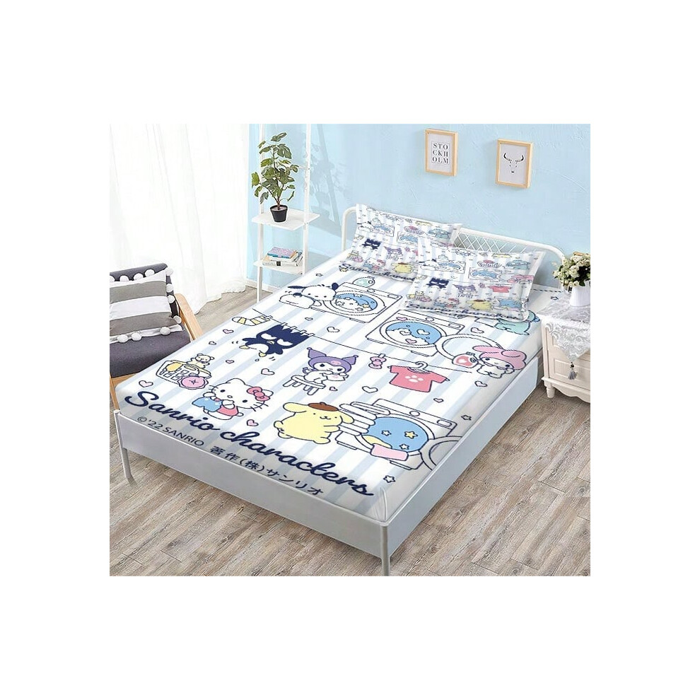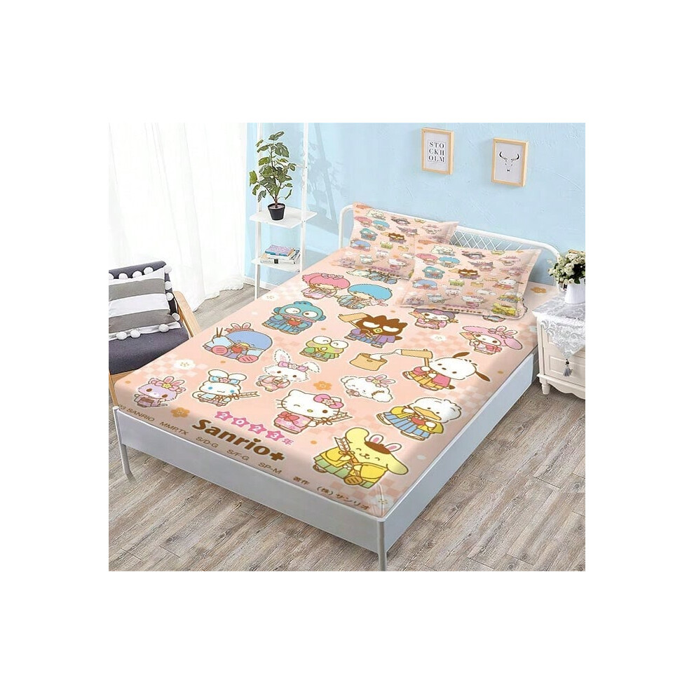 (QE15, Single fitted sheet: 180*200 (suitable for mattresses within 5-30cm)) New Sanrio Fitted Sheet Three-piece Set Mattress Protector Cartoon Childr