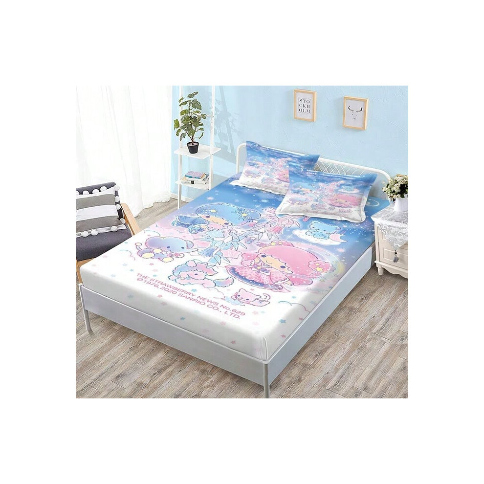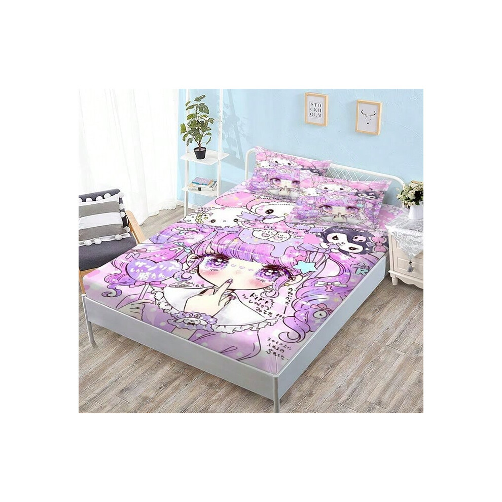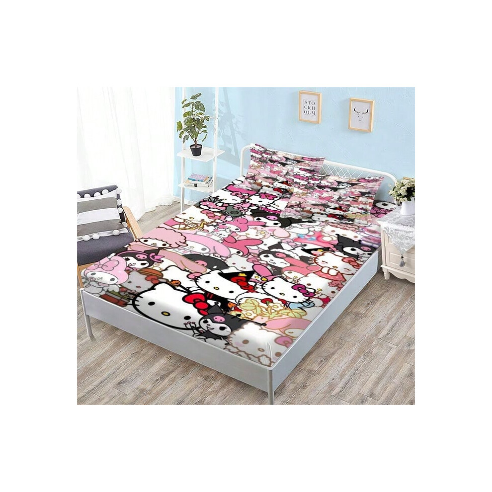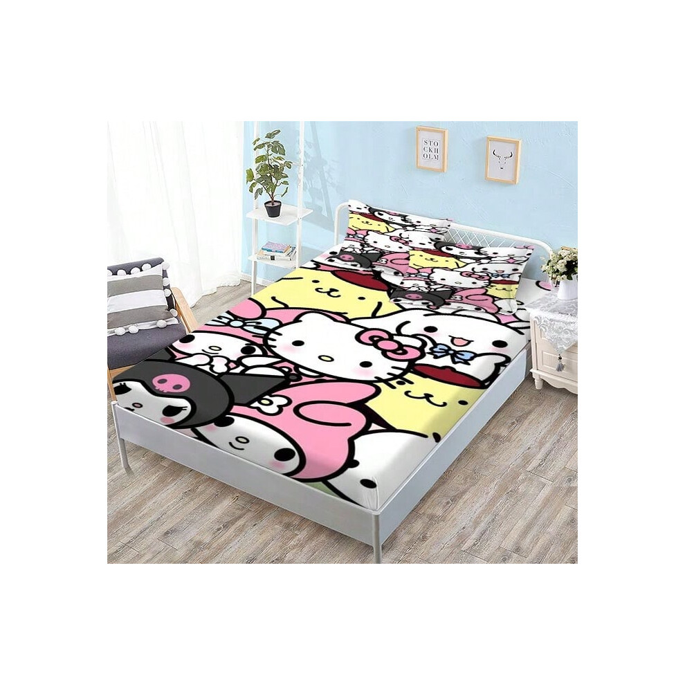 (QE15, Single fitted sheet: 180*200 (suitable for mattresses within 5-30cm)) New Sanrio Fitted Sheet Three-piece Set Mattress Protector Cartoon Childr