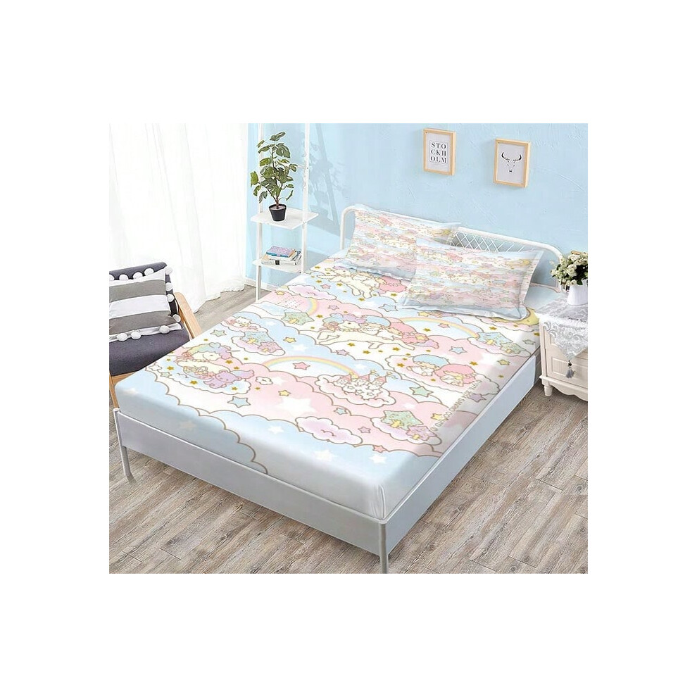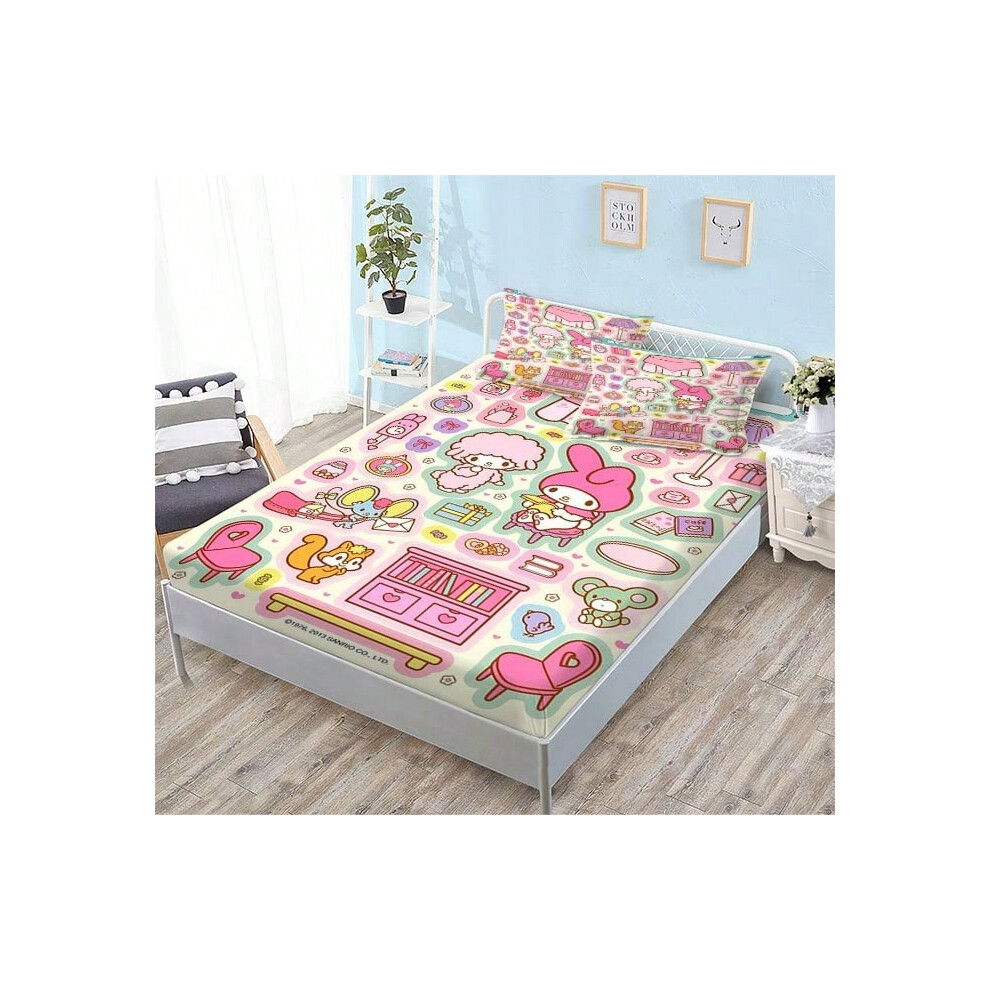(QE11, Single fitted sheet: 180*200 (suitable for mattresses within 5-30cm)) New Sanrio Fitted Sheet Three-piece Set Mattress Protector Cartoon Childr