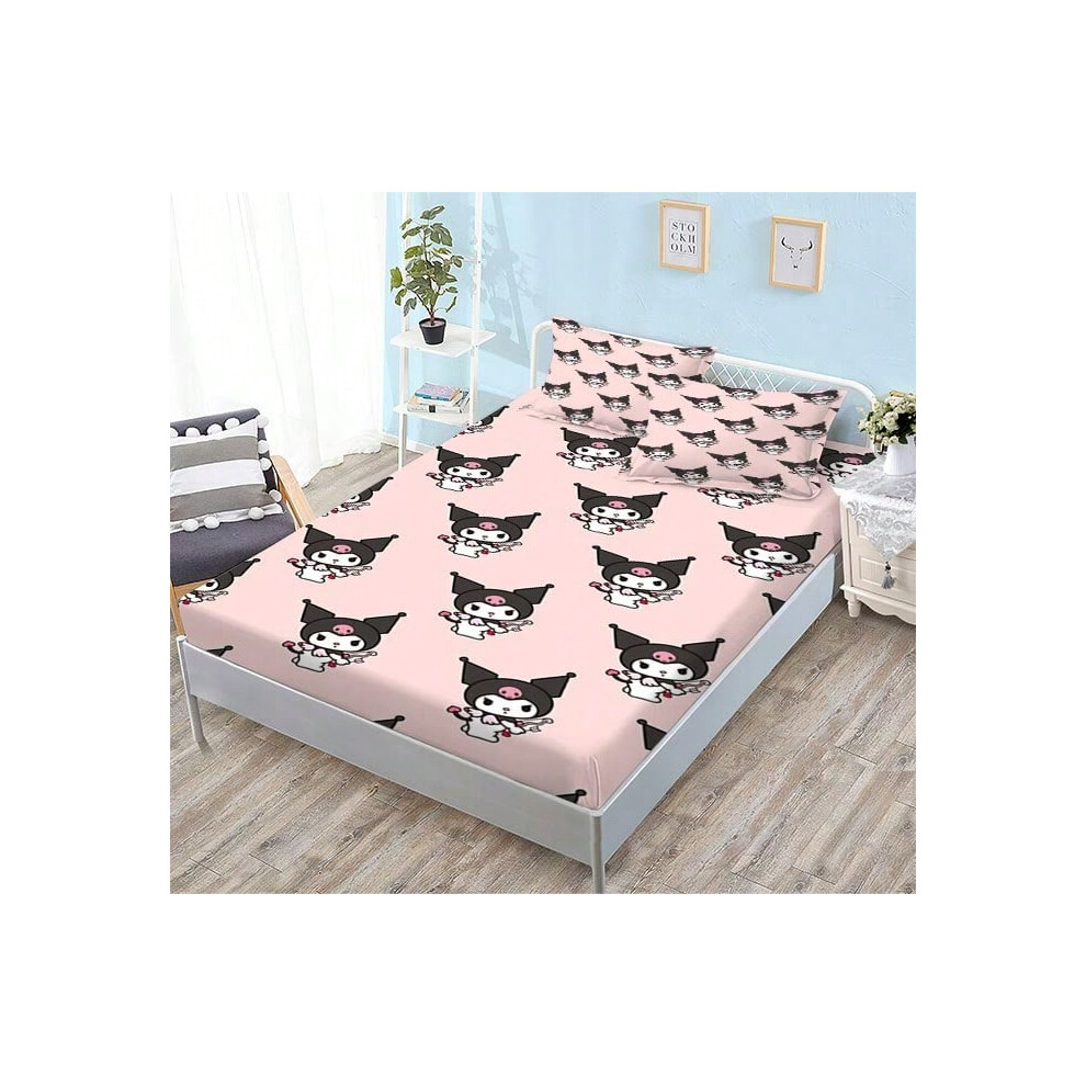 (QE25, Single fitted sheet: 150*200 (suitable for mattresses within 5-30cm)) New Sanrio Fitted Sheet Three-piece Set Mattress Protector Cartoon Childr