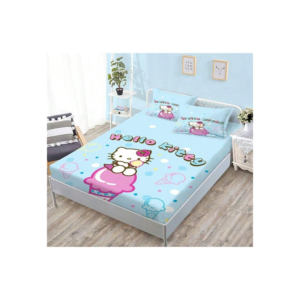 (QE27, Single fitted sheet: 135*200 (suitable for mattresses within 5-30cm)) New Sanrio Fitted Sheet Three-piece Set Mattress Protector Cartoon Childr