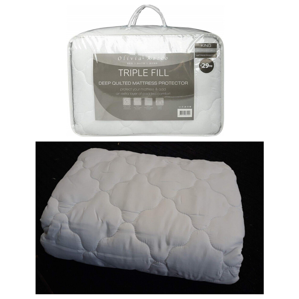 New Triple Fill Quilted Mattress Protector - Fits Up to 12 inches (30 cm) Mattresses - Fitted Sheet Style Deep Mattress Topper UK Size (UK Single, 90