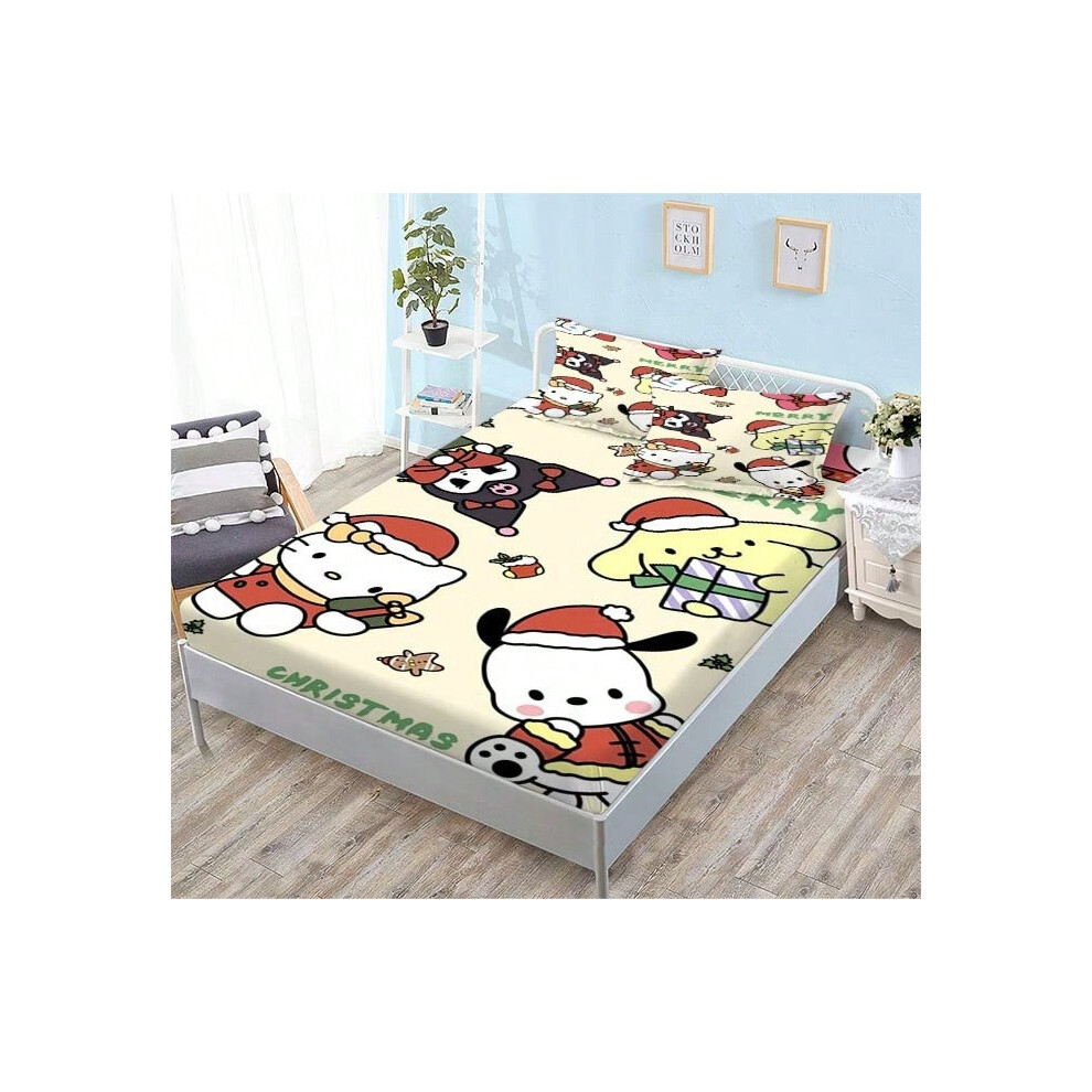 (QE16, Single fitted sheet: 135*200 (suitable for mattresses within 5-30cm)) New Sanrio Fitted Sheet Three-piece Set Mattress Protector Cartoon Childr