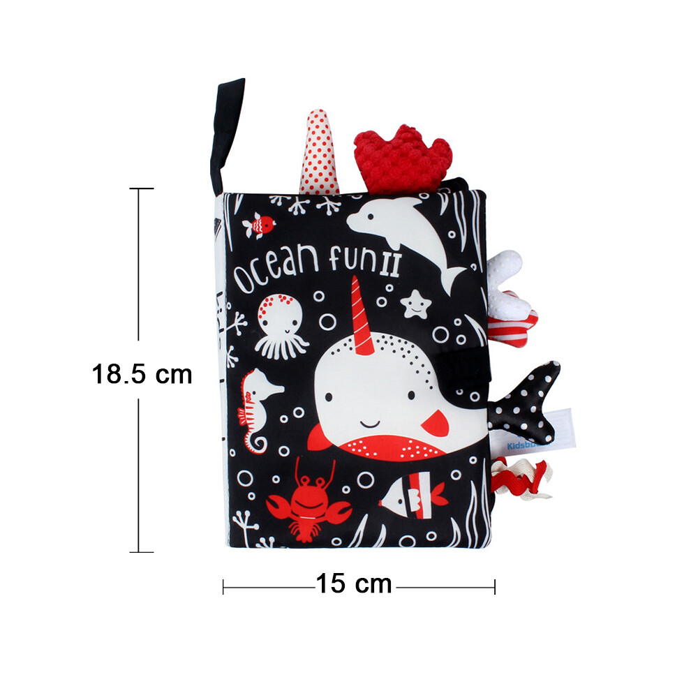 (Black white seabed, ) New Baby Rattles Mobiles Toy Soft Animal Cloth Book Newborn Stroller Hanging Bebe Early Learning Educate Baby Toys Kids Gifts