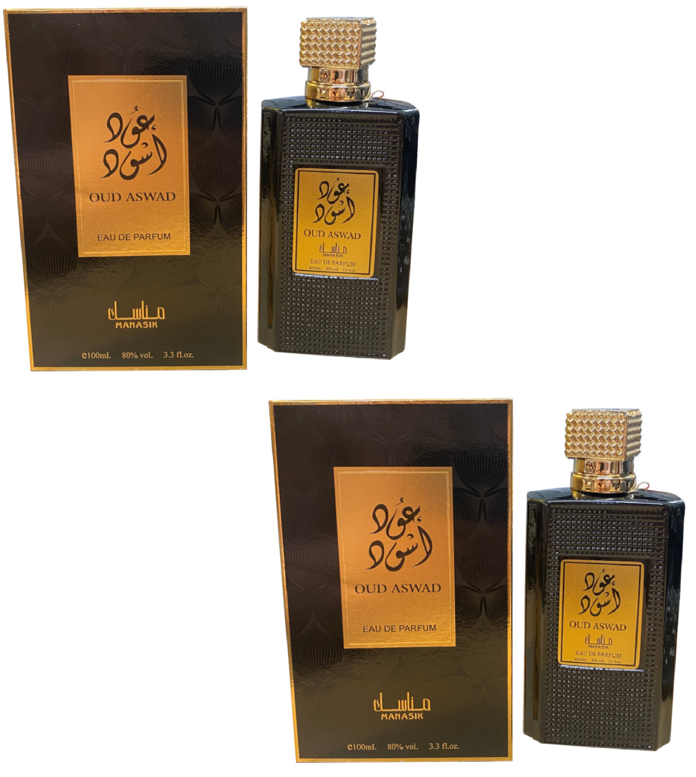 2 x OUD Aswad Arabian Perfume EDP for her Arab Fragrance by Manasik 100ml New