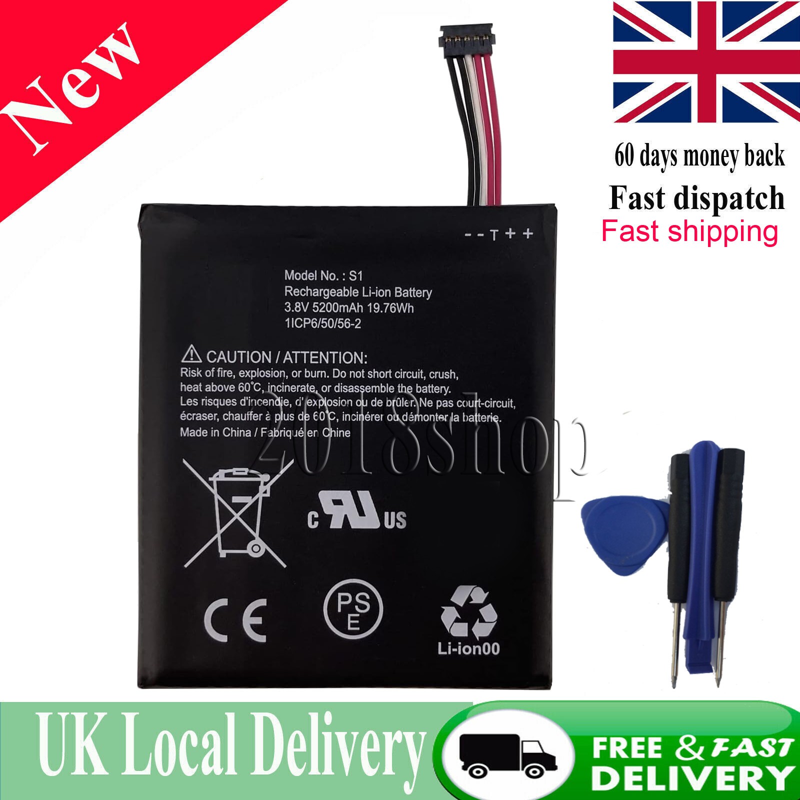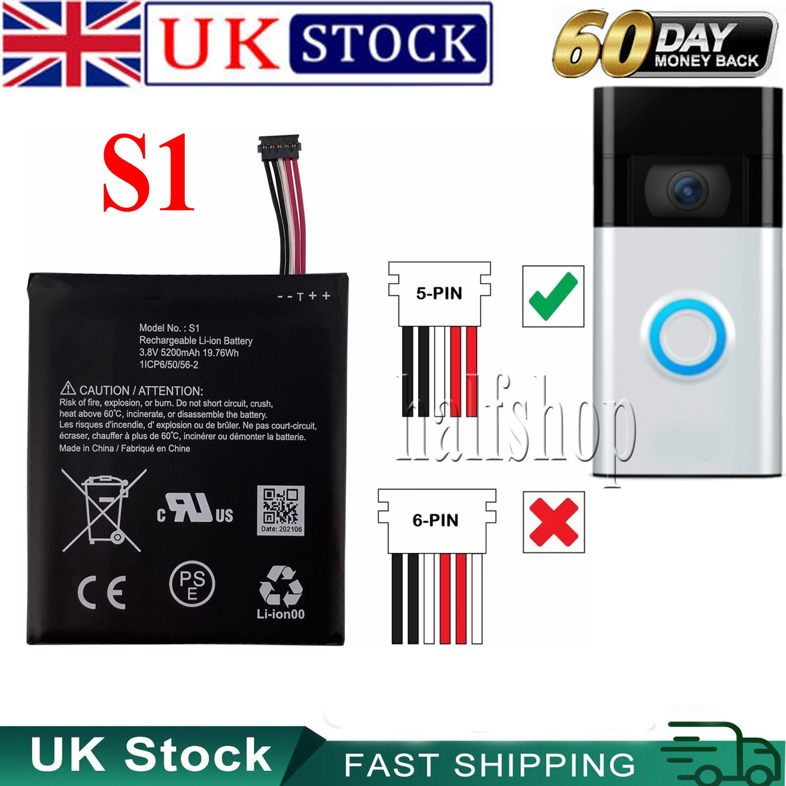 New Battery S1 (5pins) For Ring Video Doorbell (5 pins connector ) Only! -gb