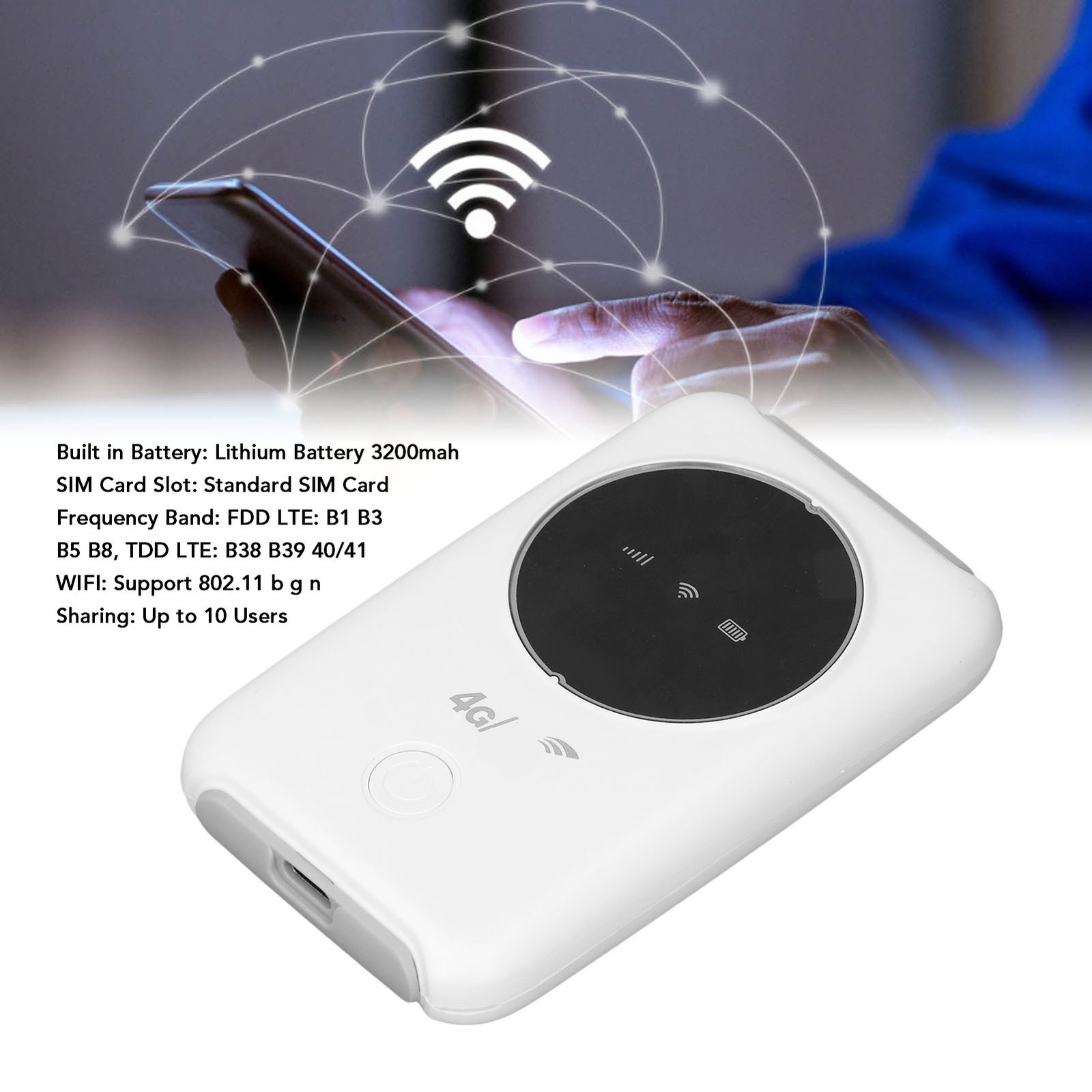 New 4G WiFi Router White SIM Card Slot Up To 10 Users 2.4GHz Battery Powered 4G