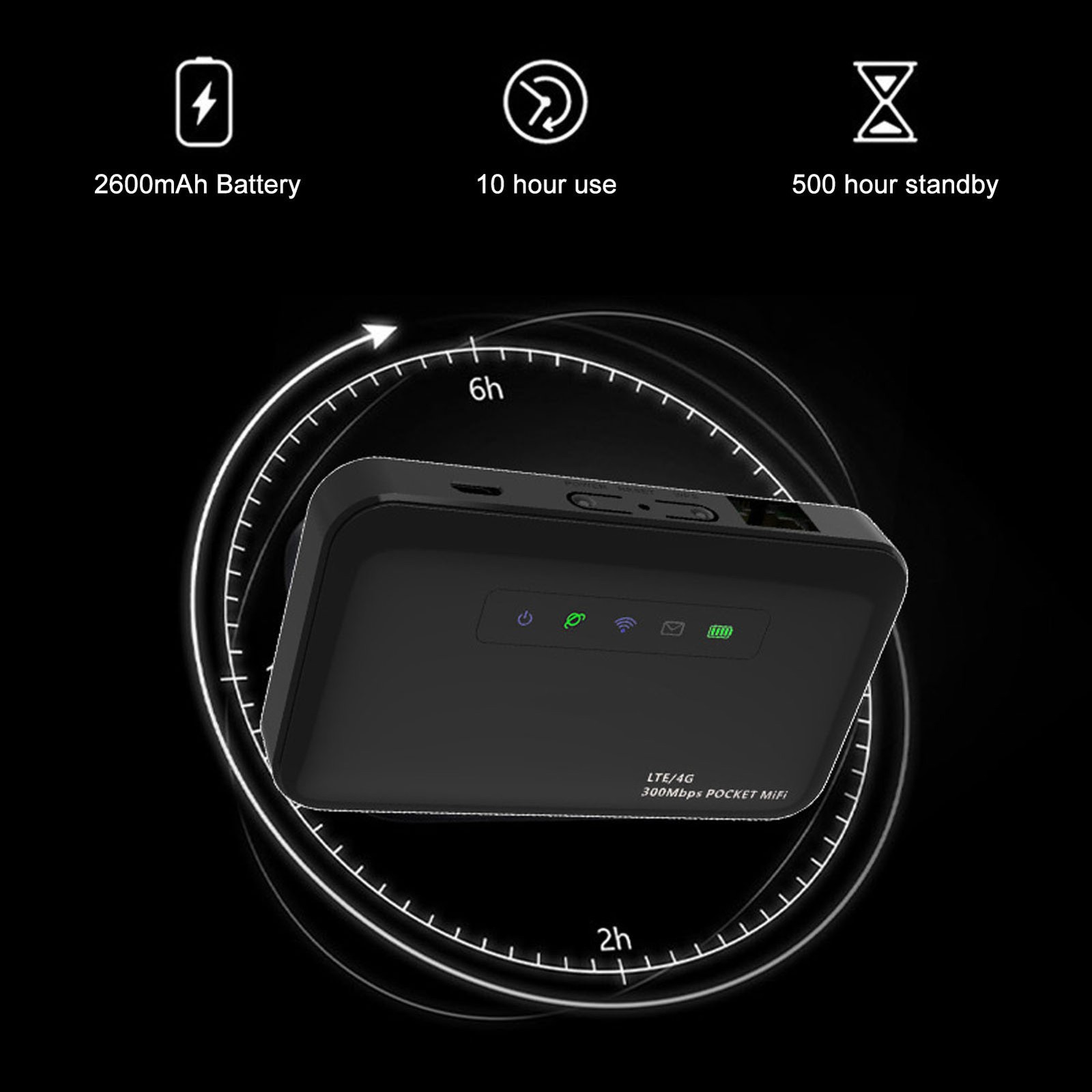 New Mobile WiFi Router 4G LTE WiFi Hotspot 300Mbps Modem Up To 10 Devices SIM