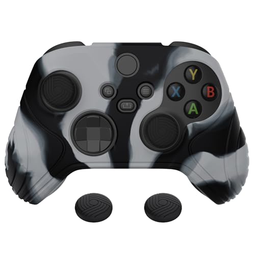 eXtremeRate PlayVital Samurai Edition Anti-Slip Controller Grip Silicone Skin, Ergonomic Soft Rubber Protective Case Cover for Xbox Series S/X Controller with Thumb Stick Caps - New Hope Gray Black