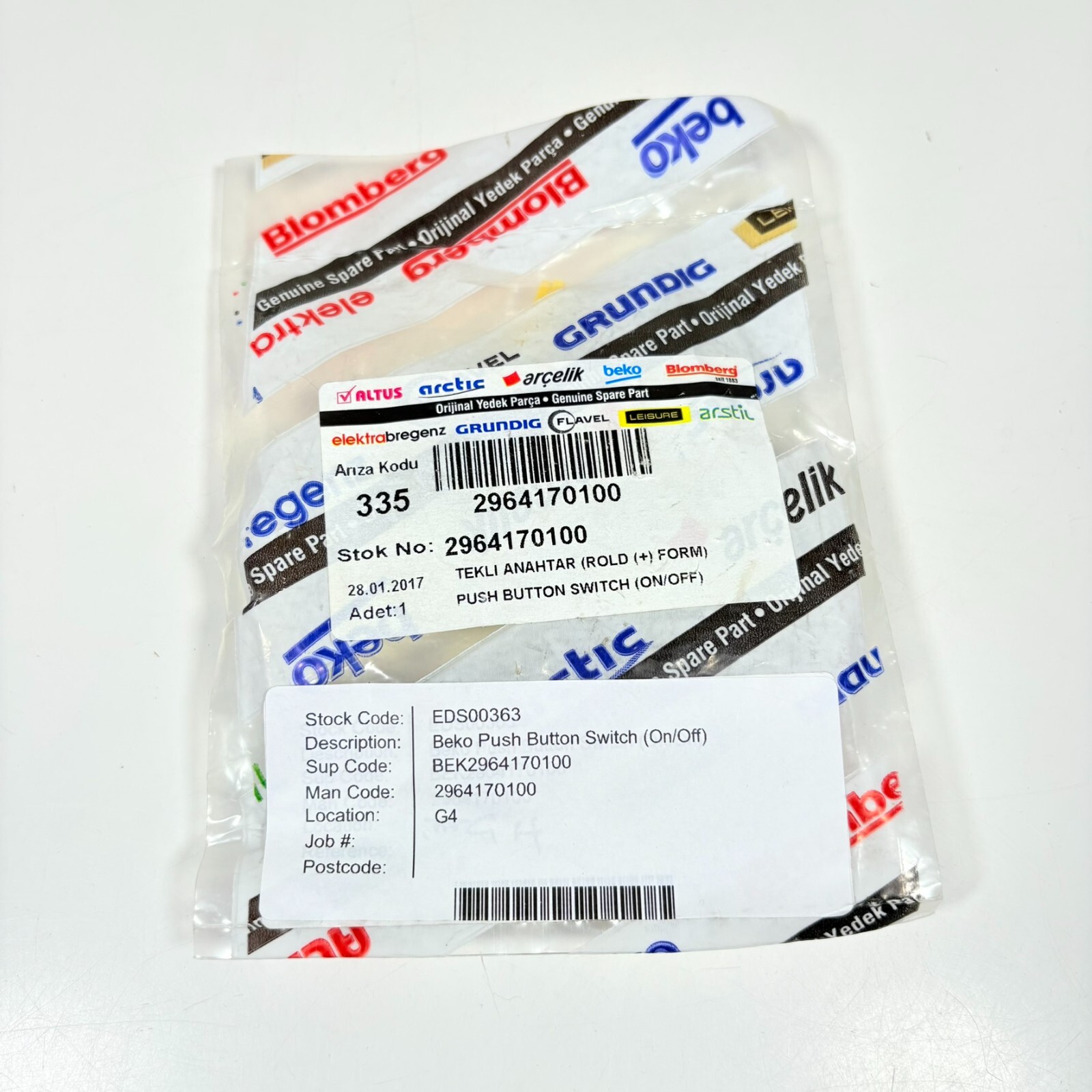 Genuine Beko DC7112W Tumble Dryer On Off Push Button Switch 2964170100 - NEW