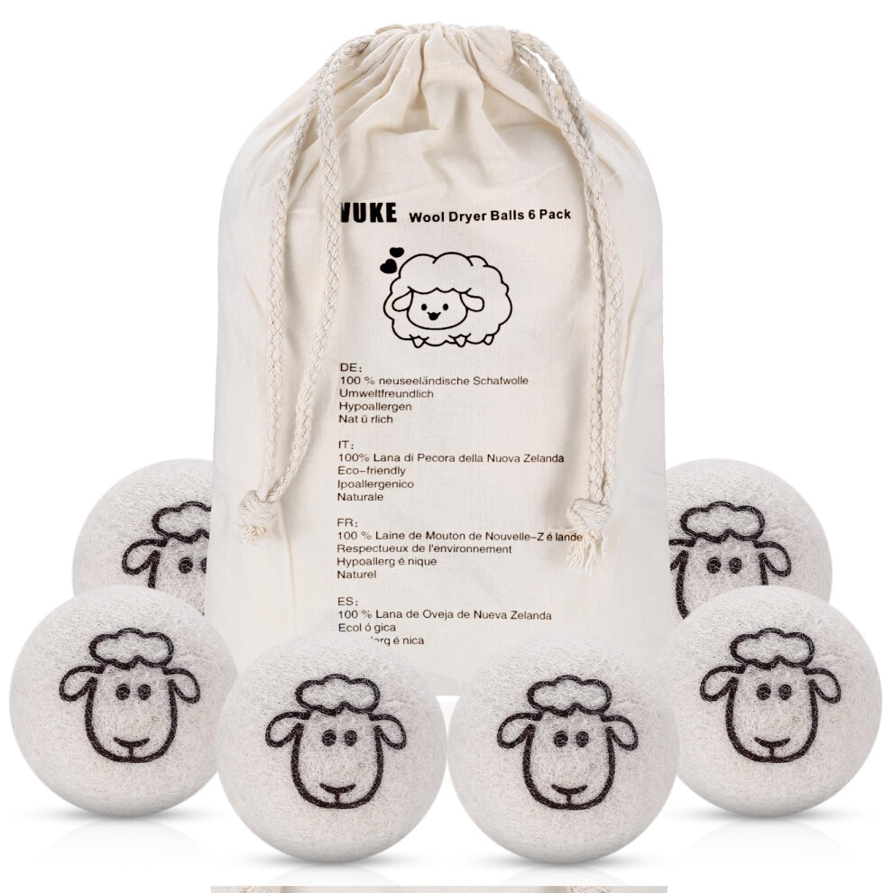 6 Pcs Wool Tumble Dryer Balls for Laundry UK, Wool Dryer Balls for Laundry Fabric Softener & Save Energy & Reduce Wrinkles, New Zealand Sheep Wool Dr