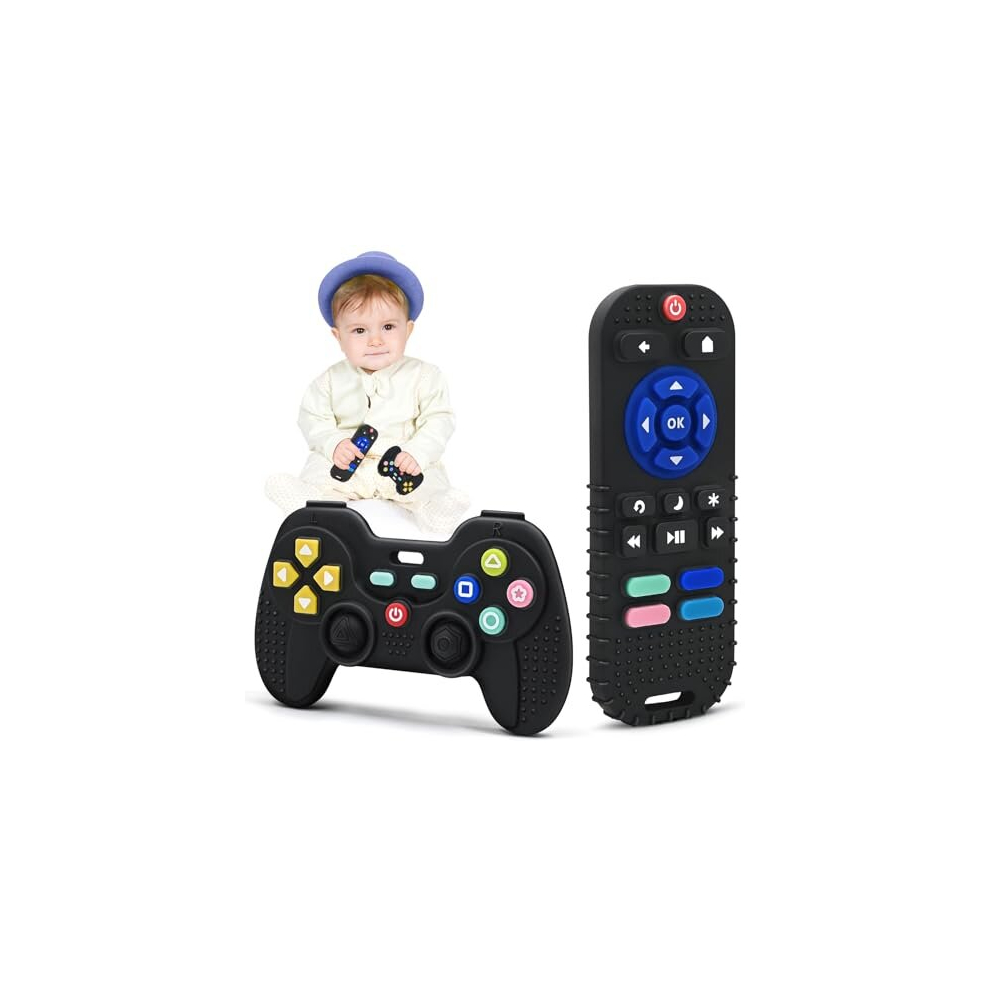 Teething Relief Teethers Toys for Babies 3-6 12 Months Gifts, Silicone Remote Control Baby Teether Bath Toys for 3 6 9 Months Newborn Infant Boy Girl Autism, Food Grade Silicone Sensory Toys, Black