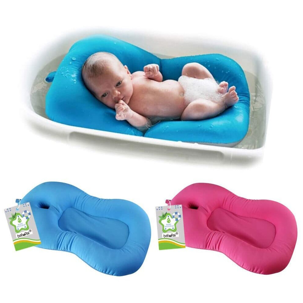 belupai Baby Bath Pad Newborn Baby Foldable Baby Bath Tub Pad Chair Shelf Newborn Bathtub Seat Infant Support Cushion Mat Bath Mat(Blue)
