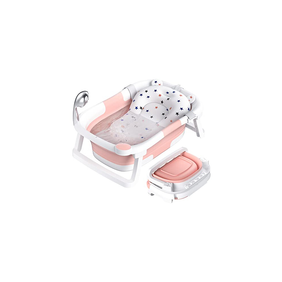 Baby Bath Tub Foldable Bathtub, Newborn Baby Plastic Bathtub with cushion pad Foldable Anti-Slip legs Collapsible tub for Toddler Baby kids Bathing - Childrens Travel Shower Bath Tubs | Pink and White