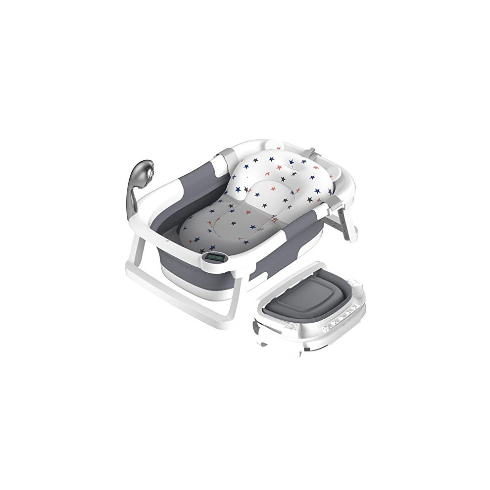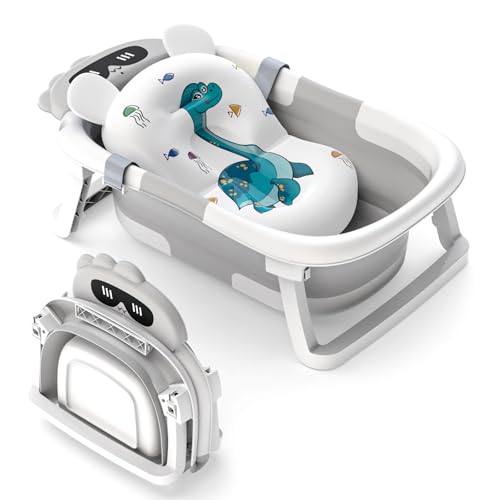 Foldable Baby Bath Tub,Baby Essentials for Newborn Bathtub with Non-Slip Support Cushion Travel Portable Collapsible Bath for Newborns 0-24 Months Infants and Toddler(Grey)