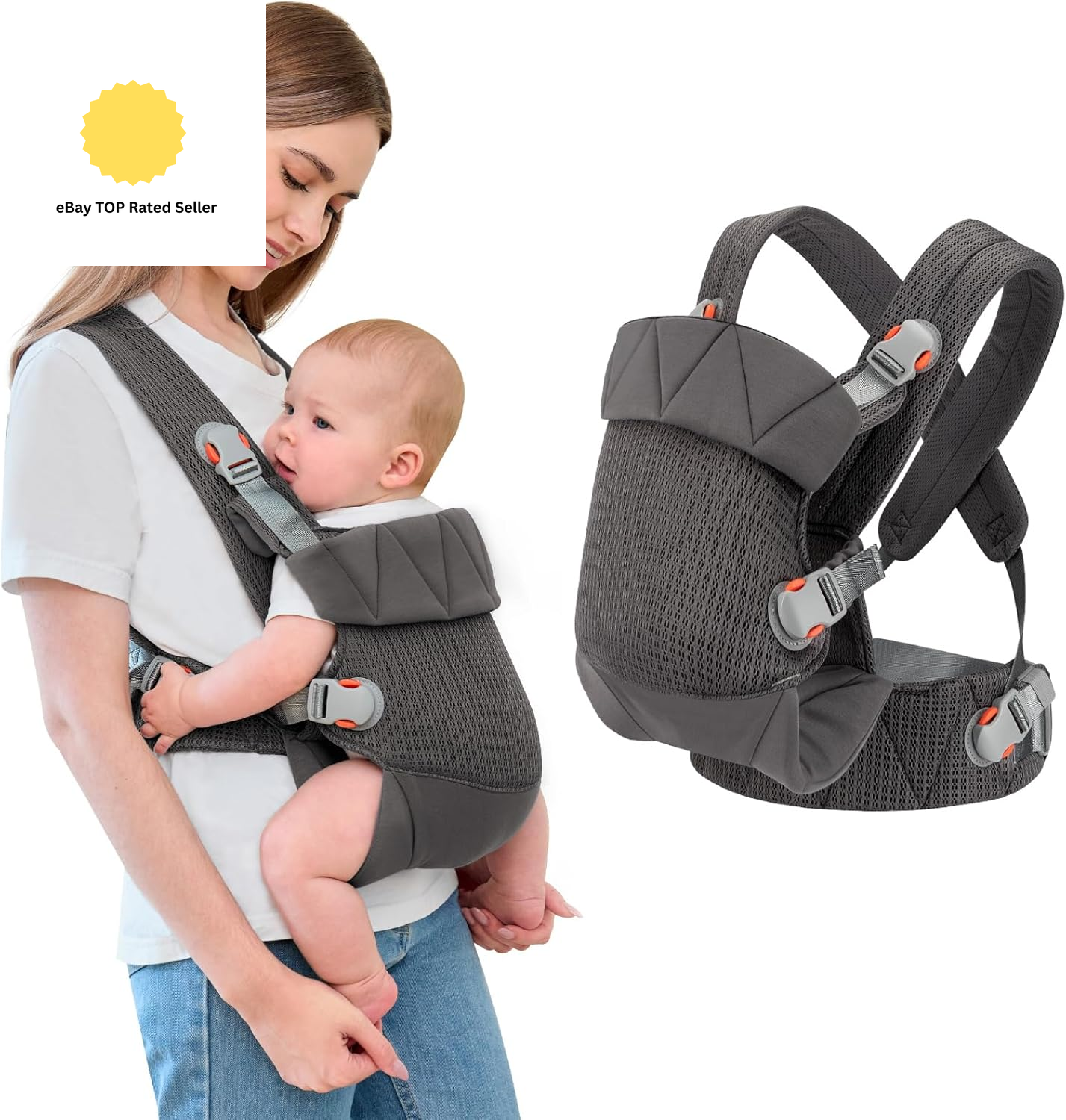 Baby Carrier Newborn to Toddler (7-35 lbs/3-15 kg) Hands Free & Hip Healthy Baby