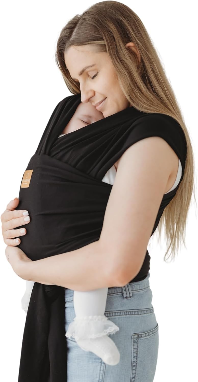 Sleepy Wrap Baby Carrier Newborn to Toddler (7-35 lbs/3-15 kg) - Hands-Free & Hip-Healthy Baby Wrap Carrier, Machine-Washable & Breathable (Black)