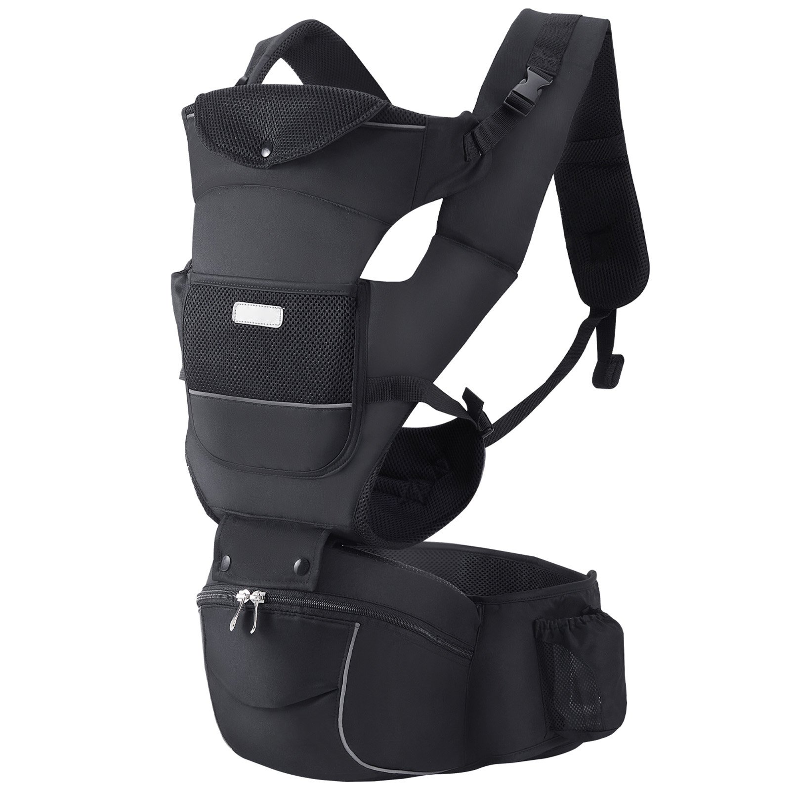 Bebamour Baby Carrier Newborn to Toddler Baby Carrier Hipseat 0-36Months with Head Hood, 3 PCS Teething Pads, Waist Extender, Black