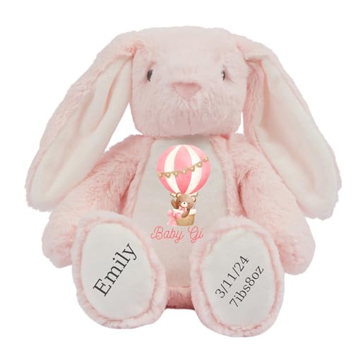 HotScamp Personalised Bunny Newborn Baby Girl New Birth Announcement Custom Plush Named Baby Name - Cuddly Toy Comforter Special Nursery Keepsake - Pink Bunny