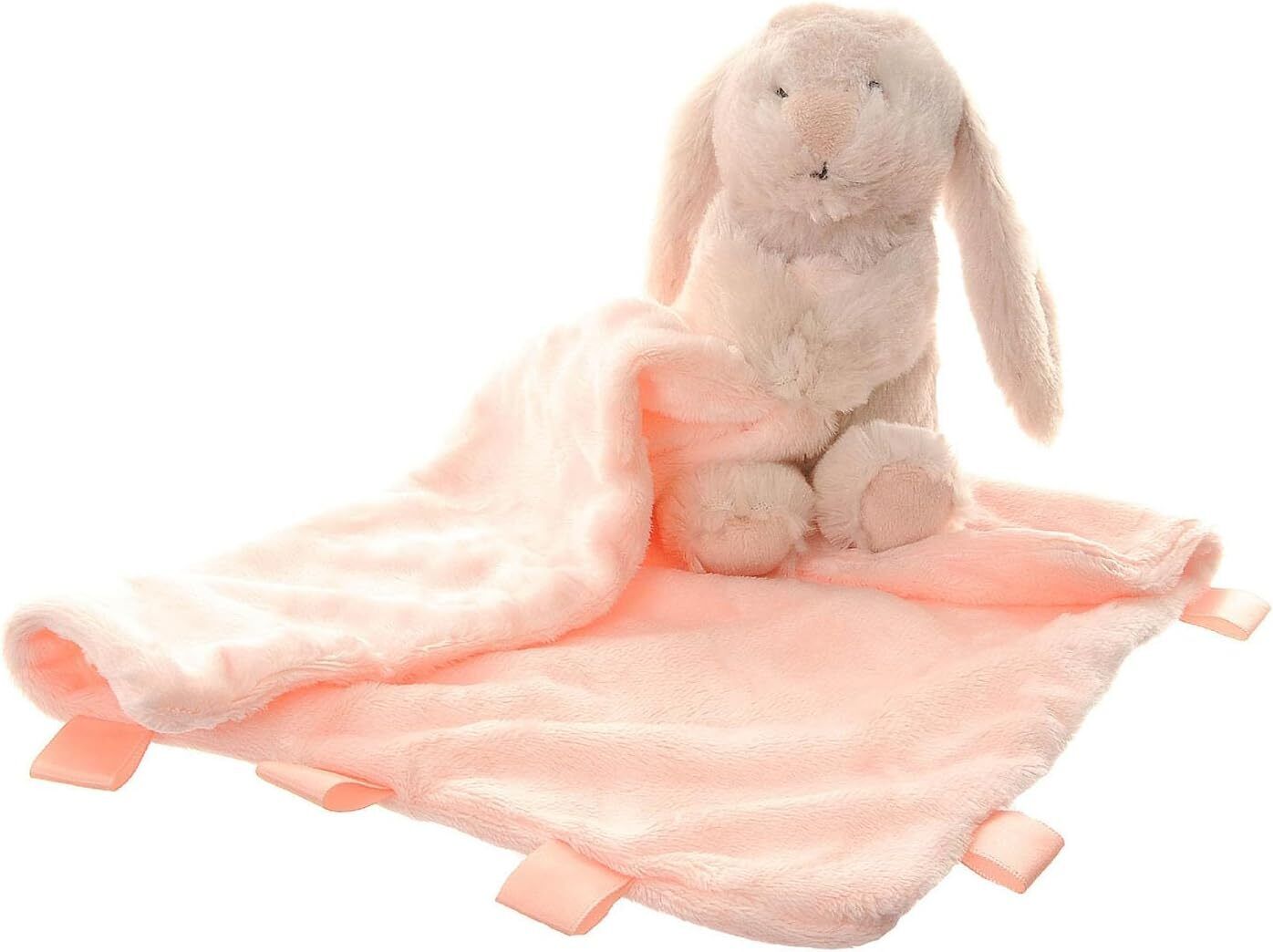Ziggle Baby Comforter for Newborns | Soft Pink Bunny Blanket Baby Toy | Newborn Essentials and Teddy Blanket Gift | New Baby Boy or Girl Gift Idea | Eco Friendly | 30x30cm
