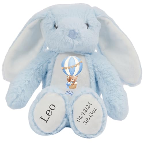 HotScamp Personalised Bunny Newborn Baby Boy New Birth Announcement Custom Plush Named Baby Name - Cuddly Toy Comforter Special Nursery Keepsake - Blue Bunny