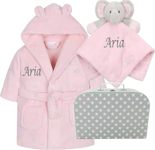 Hoolaroo Newborn Baby Girl Gift Set Personalised New Baby Gift Pink Baby Dressing Gown Comforter Hamper Present (Age 0-6 Months)